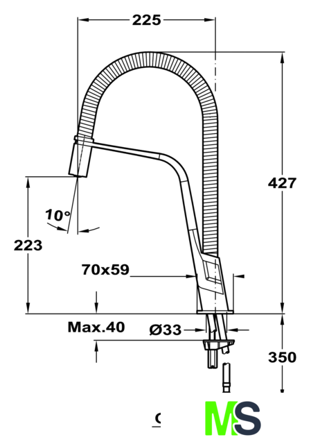 | Длина (вылет) излива | 225 мм |