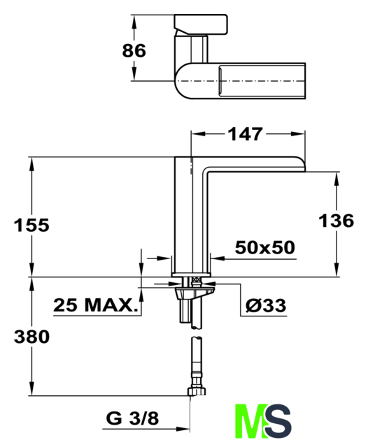 | Длина (вылет) излива | 147 мм |