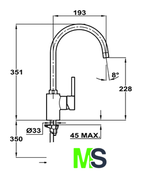 | Поворотный излив | 360 ° |