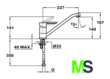| Длина (вылет) излива | 227 мм |
