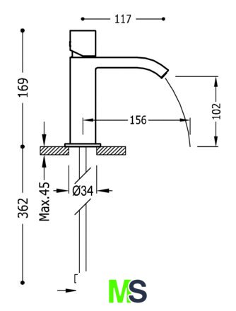 | Длина (вылет) излива | 156 мм |