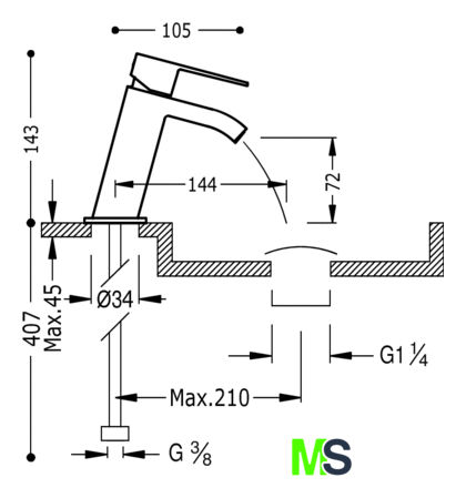 | Длина (вылет) излива | 144 мм |