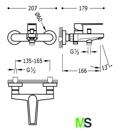 | Длина (вылет) излива | 166 мм |