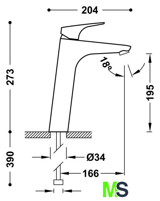 | Длина (вылет) излива | 166 мм |