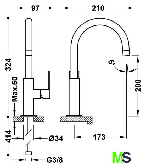 | Поворотный излив | 360 ° |
