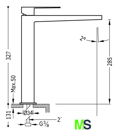 | Высота излива | 285 мм |