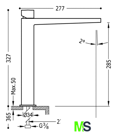 | Высота излива | 285 мм |