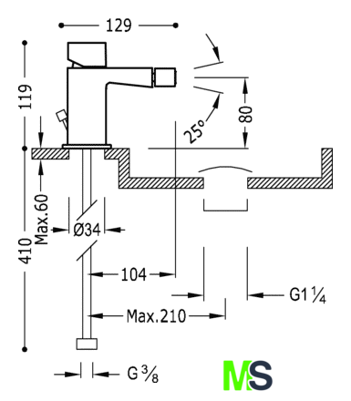 | Длина (вылет) излива | 104 мм |