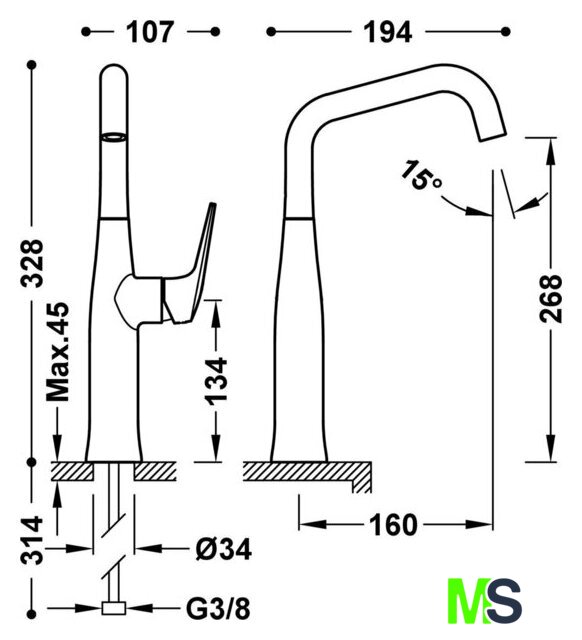 | Поворотный излив | 360 ° |