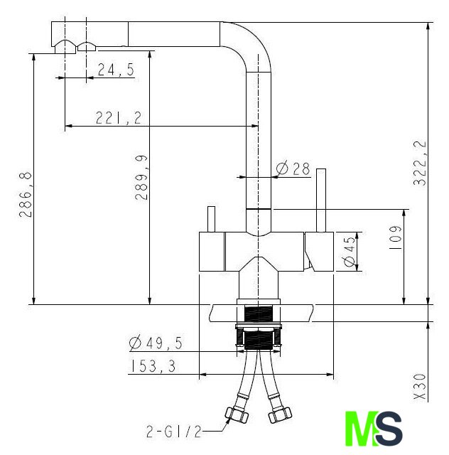 | Длина (вылет) излива | 221.2 мм |