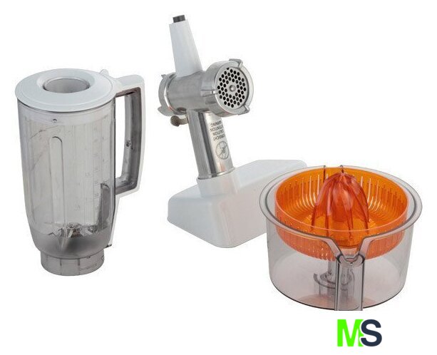 | Функции | мясорубка, блендер, цитрус-пресс, взбивание, смешивание, замешивание дрожжевого теста, терка, шинковка, ломтерезка, нарезание кубиками |