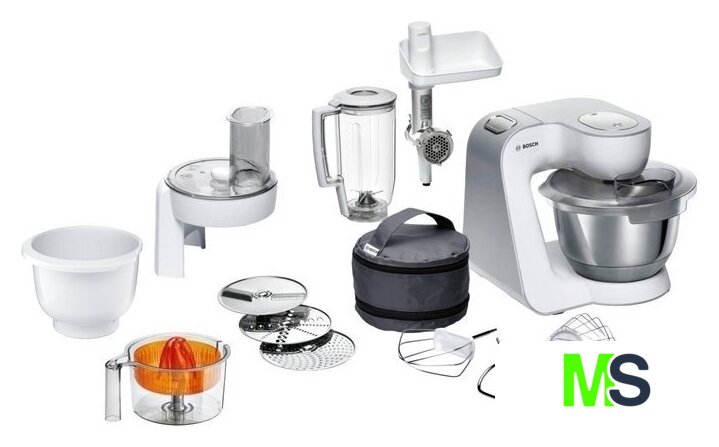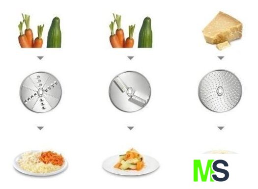 | Функции | мясорубка, блендер, цитрус-пресс, взбивание, смешивание, замешивание дрожжевого теста, терка, шинковка, ломтерезка |