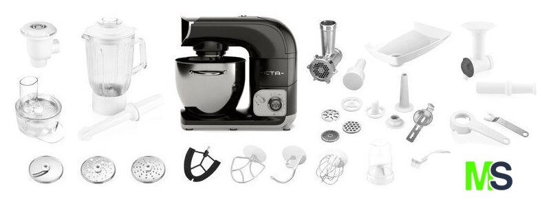 | Функции | мясорубка, блендер, цитрус-пресс, взбивание, смешивание, замешивание дрожжевого теста, терка, шинковка, ломтерезка, помол круп, кофе |