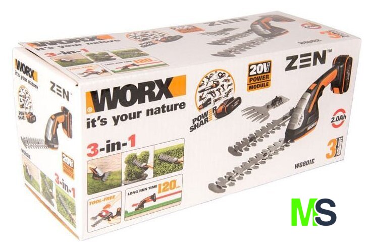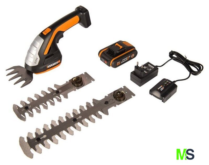 | Комплектация | -Ножницы;- АКБ;- ЗУ;- 2 насадки для кустарников (20 см и 12 см); - насадка для травы;- насадка-тяпка |