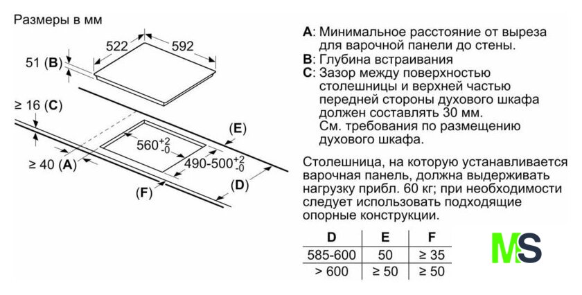 Размеры ниши для встраивания |