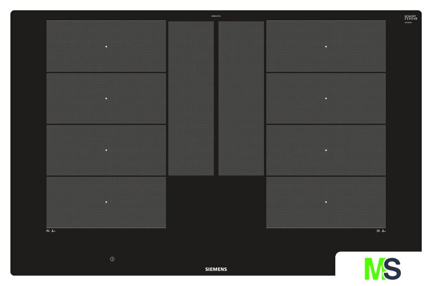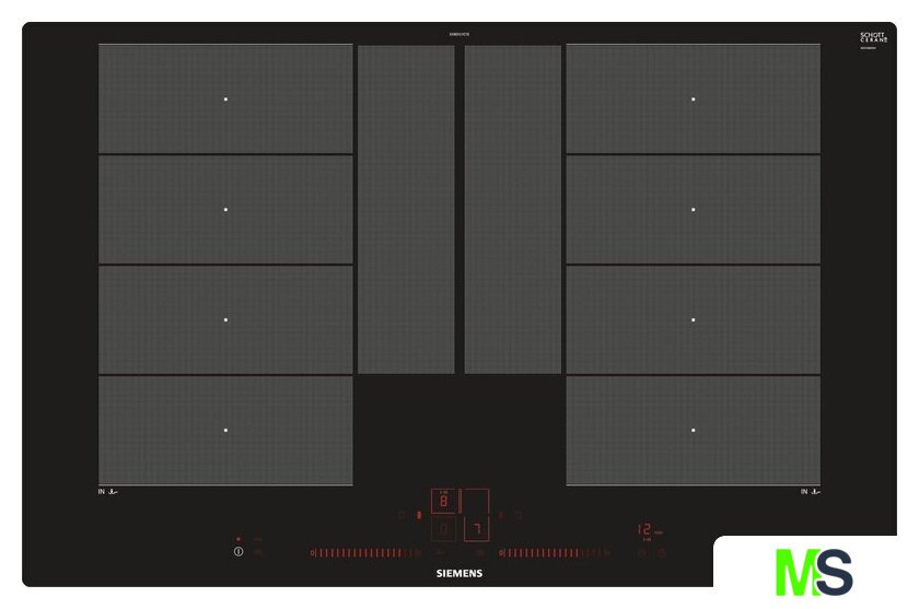 Подробная информация о конфорках | Зоны приготовления:2 x 380 мм x 230 мм, 3,3 кВт (максимальная мощность 3,7 кВт) или 4 x 190 мм, 2,2 кВт (максимальная мощность 3,7 кВт) |