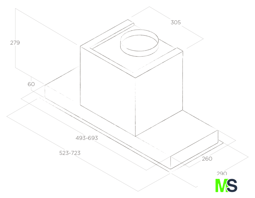 | Минимальная производительность отвода | 300 куб. м/ч |