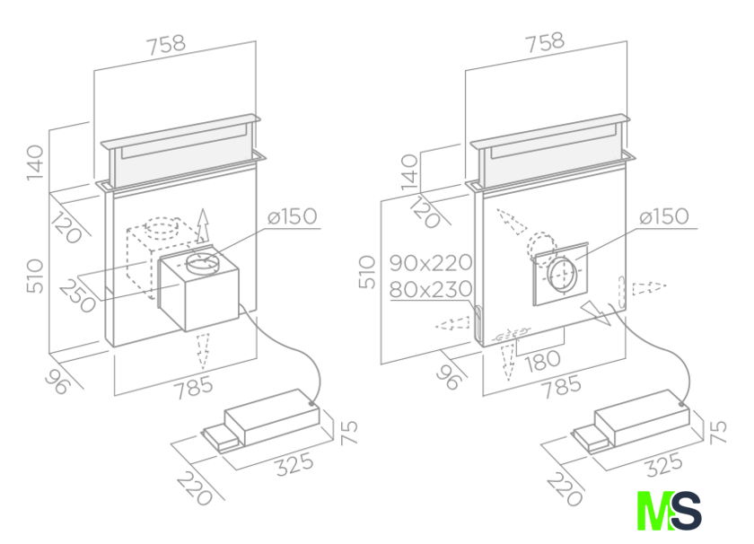 | Максимальная производительность отвода | 515 куб. м/ч |