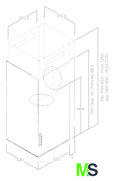 | Минимальная производительность отвода | 125 куб. м/ч |
