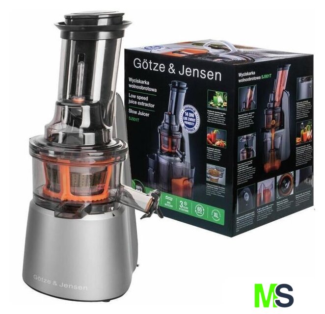 | В комплекте | В упаковке, кроме тихоходной соковыжималки GÖTZE & JENSEN SJ901T , вы найдете 3 сита , 2 контейнера , щетку для чистки, инструкцию на польском языке и гарантийные условия. |