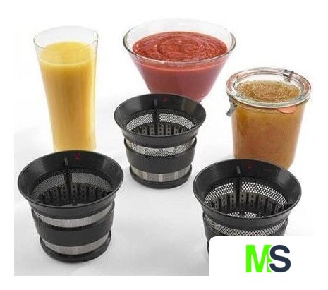 | Комплектация | Мелкий фильтр.Крупный фильтр.Фильтр для соусов и джемов.Контейнер для хранения фильтров.Контейнер для мякоти.Кувшин для сока. |