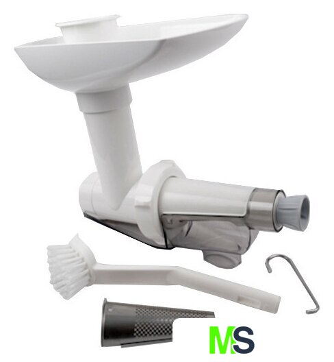 | Комплектация | В комплекте насадки: - корпус насадки-соковыжималки (пластиковый), - шнек для выжима сока, - желобок, - держатель фильтра, - 2 фильтр-сетки с диаметрами отверстия 1 мм и 2 мм, - толкатель, - щеточка, - лоток, - накатная гайка, - винт регулировки насадки, - прокладка O-Ring 25x20x2.5 мм, - уплотнительное кольцо на шнек диаметром 35 мм. |