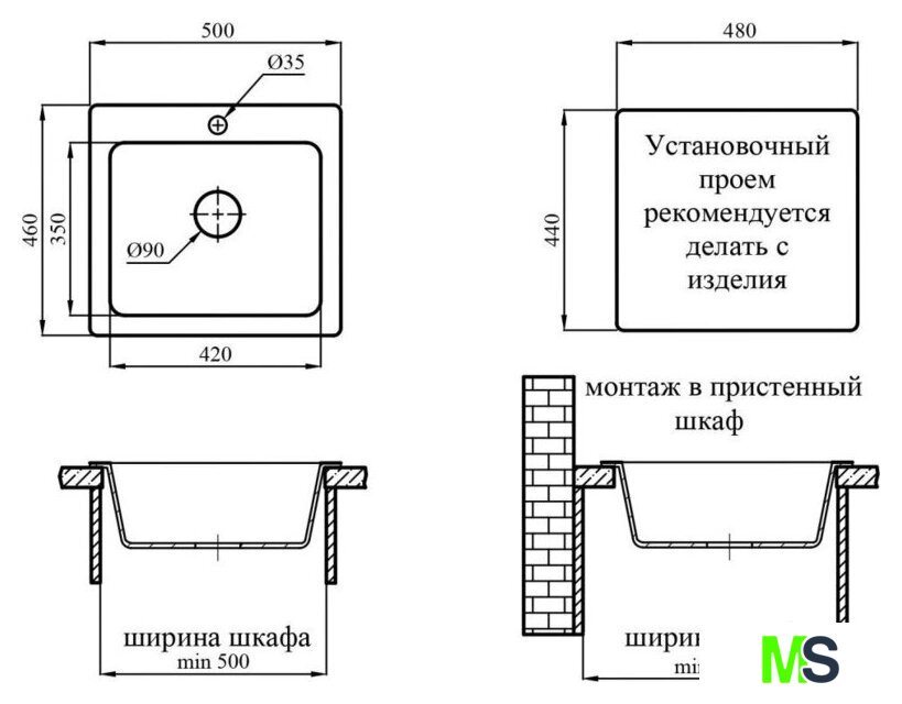 | Ширина мойки | 46 см |