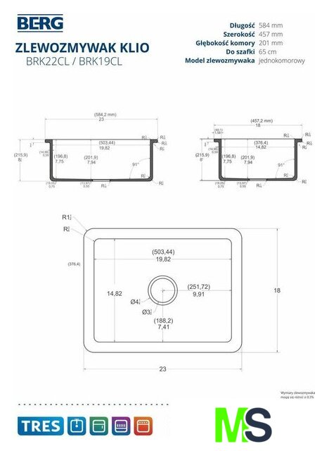 | Длина мойки | 58.5 см |