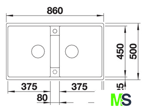 Ширина мойки 86 см