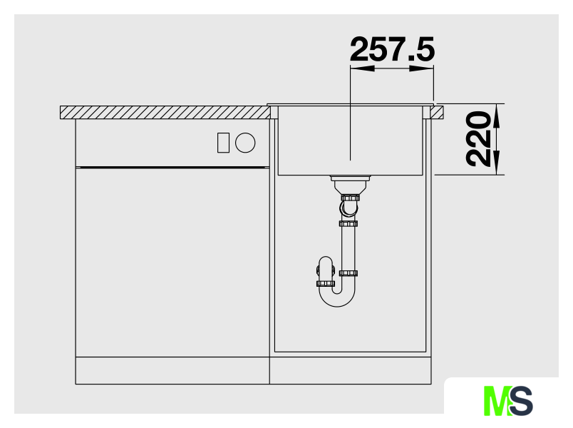 врезная на столешницу, искусственный камень, размеры: 51x51.5 см, в шкаф 50 см