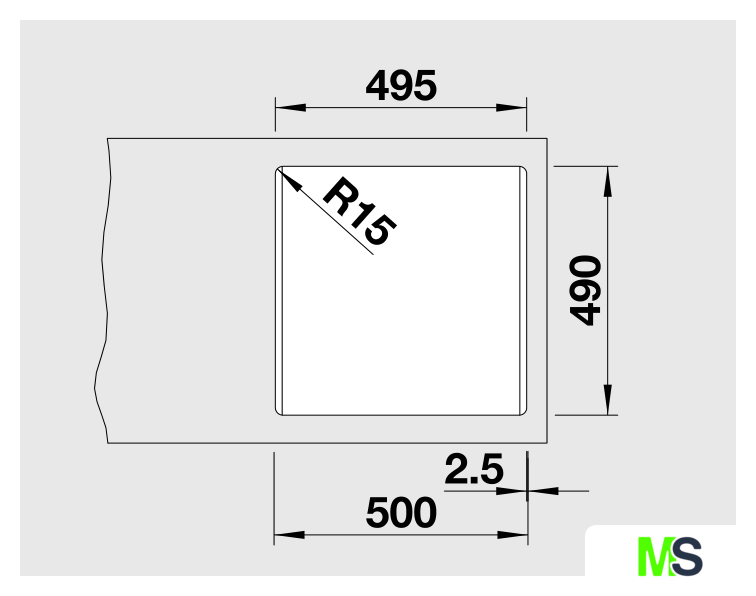 врезная на столешницу, искусственный камень, размеры: 51x51.5 см, в шкаф 50 см