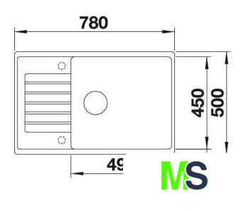 врезная на столешницу, искусственный камень, размеры: 78x50 см, в шкаф 60 см