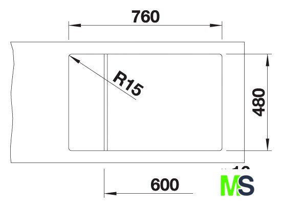 врезная на столешницу, искусственный камень, размеры: 78x50 см, в шкаф 60 см