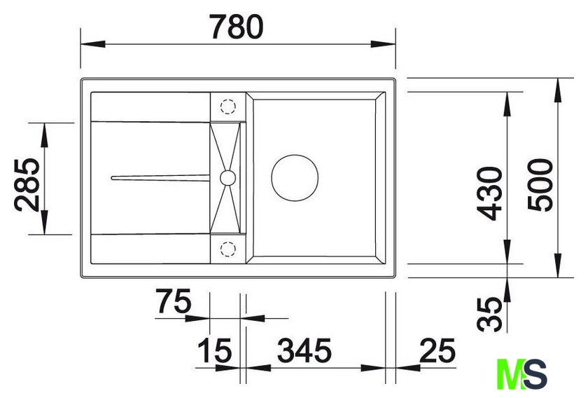 врезная на столешницу, искусственный камень, размеры: 50x78 см, в шкаф 45 см