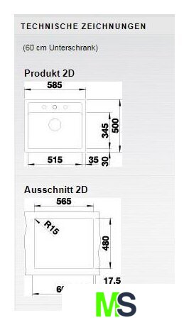врезная на столешницу, искусственный камень, размеры: 50x58.5 см, в шкаф 60 см