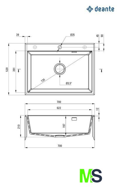 Диаметр сливного отверстия | 3.5" |