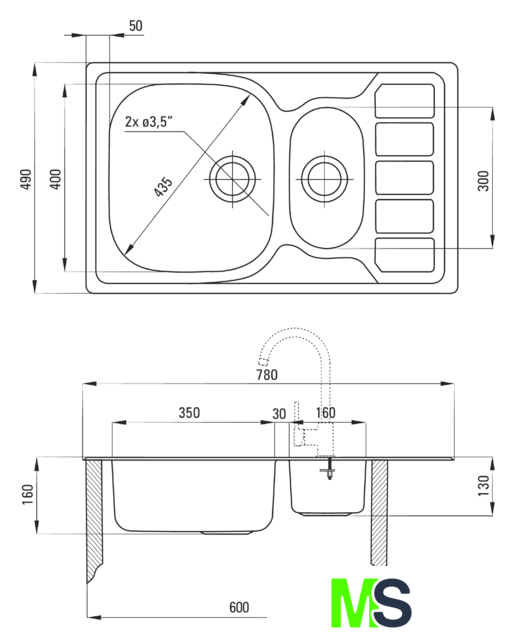 | Диаметр сливного отверстия | 3.5" |