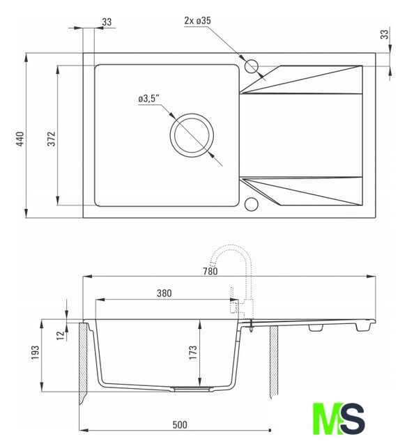 Диаметр сливного отверстия | 3.5" |