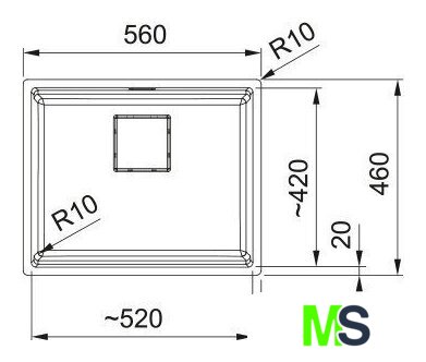 Ширина мойки 56 см