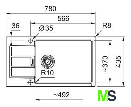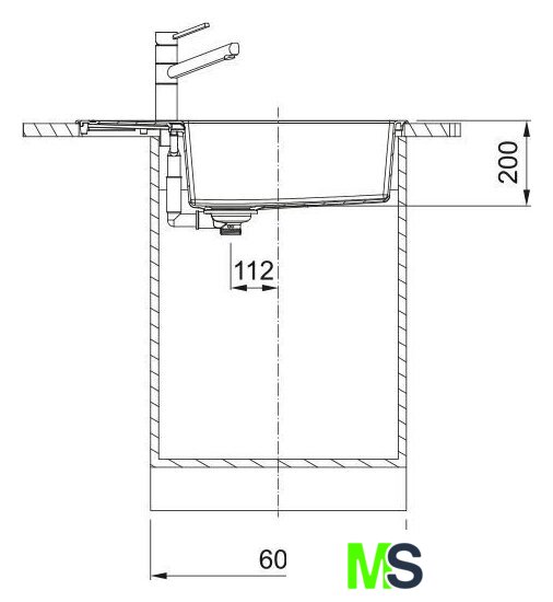 врезная на столешницу, искусственный камень, размеры: 78x43.5 см, в шкаф 60 см