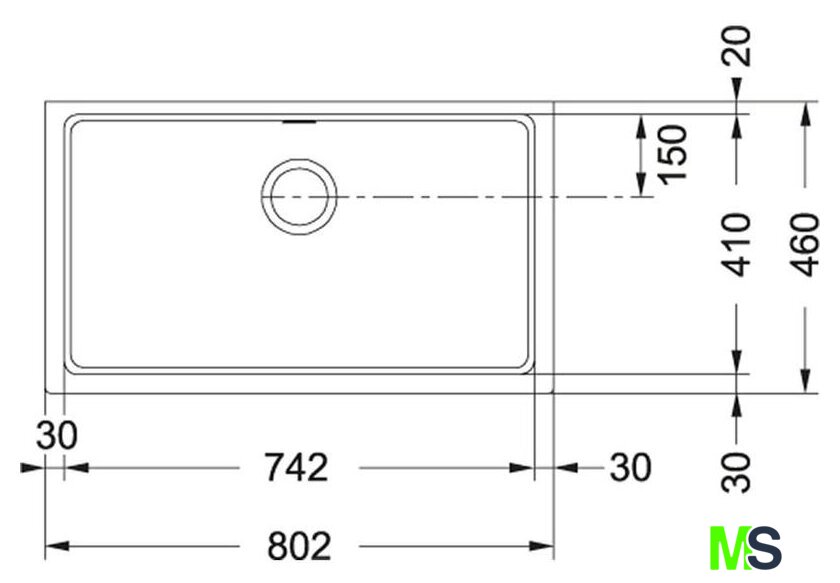врезная на столешницу, нержавеющая сталь, размеры: 74x44 см, в шкаф 80 см