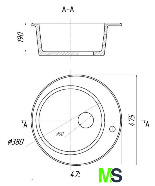 врезная на столешницу, искусственный камень, размеры: 47.5x47.5 см