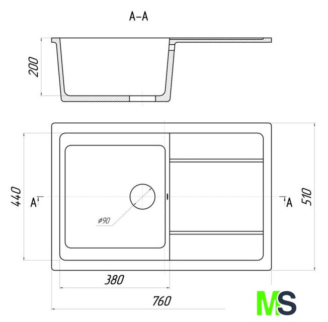 врезная на столешницу, искусственный камень, размеры: 76x51 см