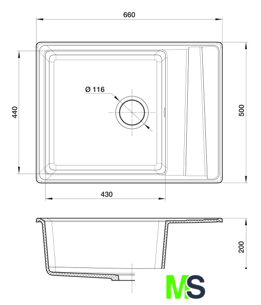 врезная на столешницу, искусственный камень, размеры: 66x50 см, в шкаф 50 см