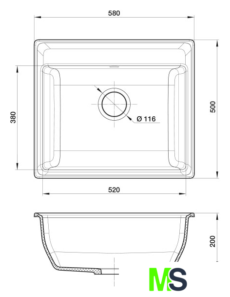 врезная на столешницу, искусственный камень, размеры: 58x50 см, в шкаф 60 см