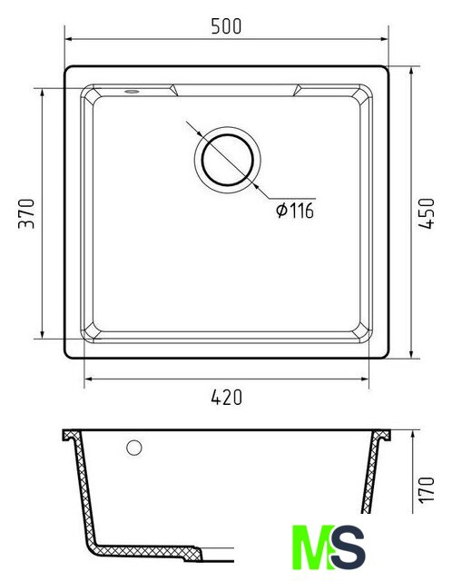 врезная под столешницу, искусственный камень, размеры: 50x45 см, в шкаф 50 см