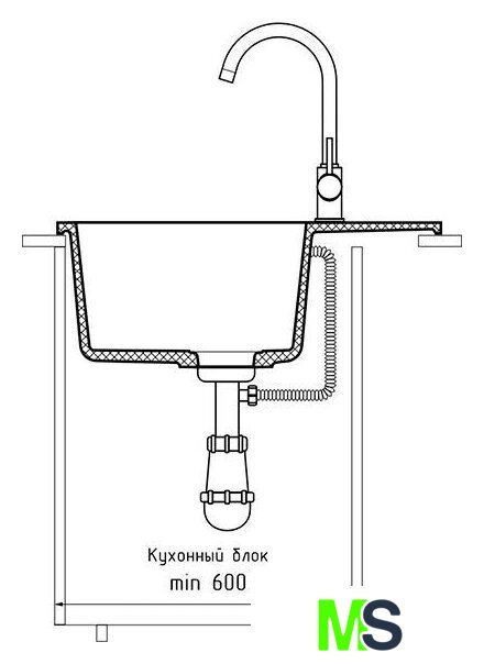 врезная на столешницу, искусственный камень, размеры: 58x49 см, в шкаф 60 см