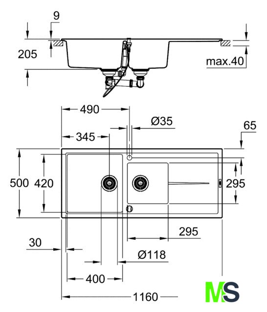 | Ширина мойки | 116 см |