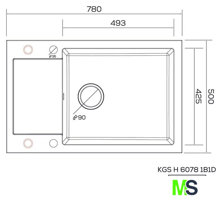 | Диаметр сливного отверстия | 3.5" |