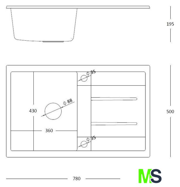 Длина мойки 78 см